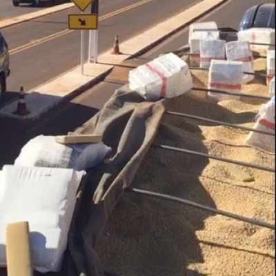 Policiais Rodoviários Federais suspeitaram da carreta, que estava com problemas mecânicos. Durante buscas na carroceria, em meio aos grãos de soja, encontraram muitos fardos contendo tabletes do entorpecente.